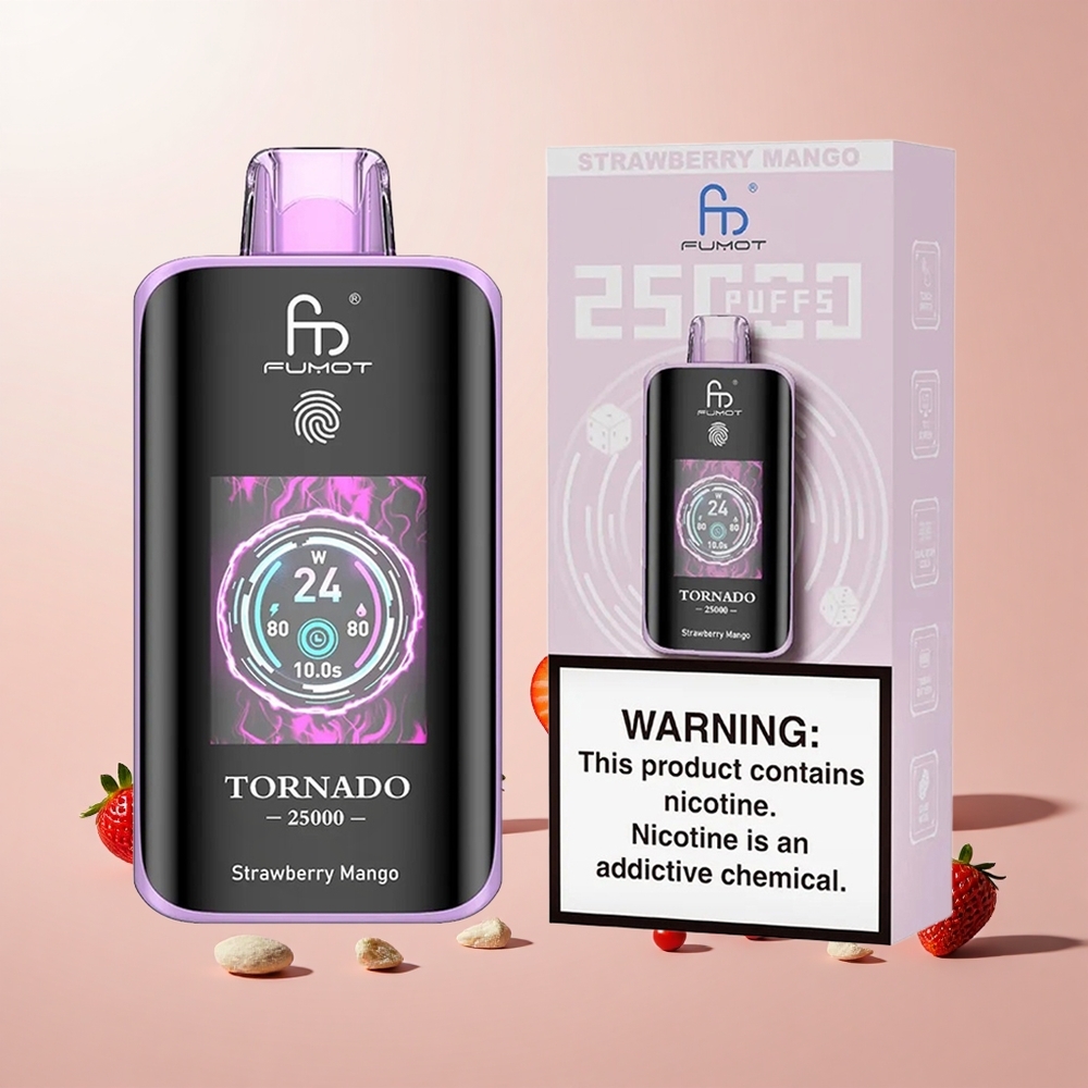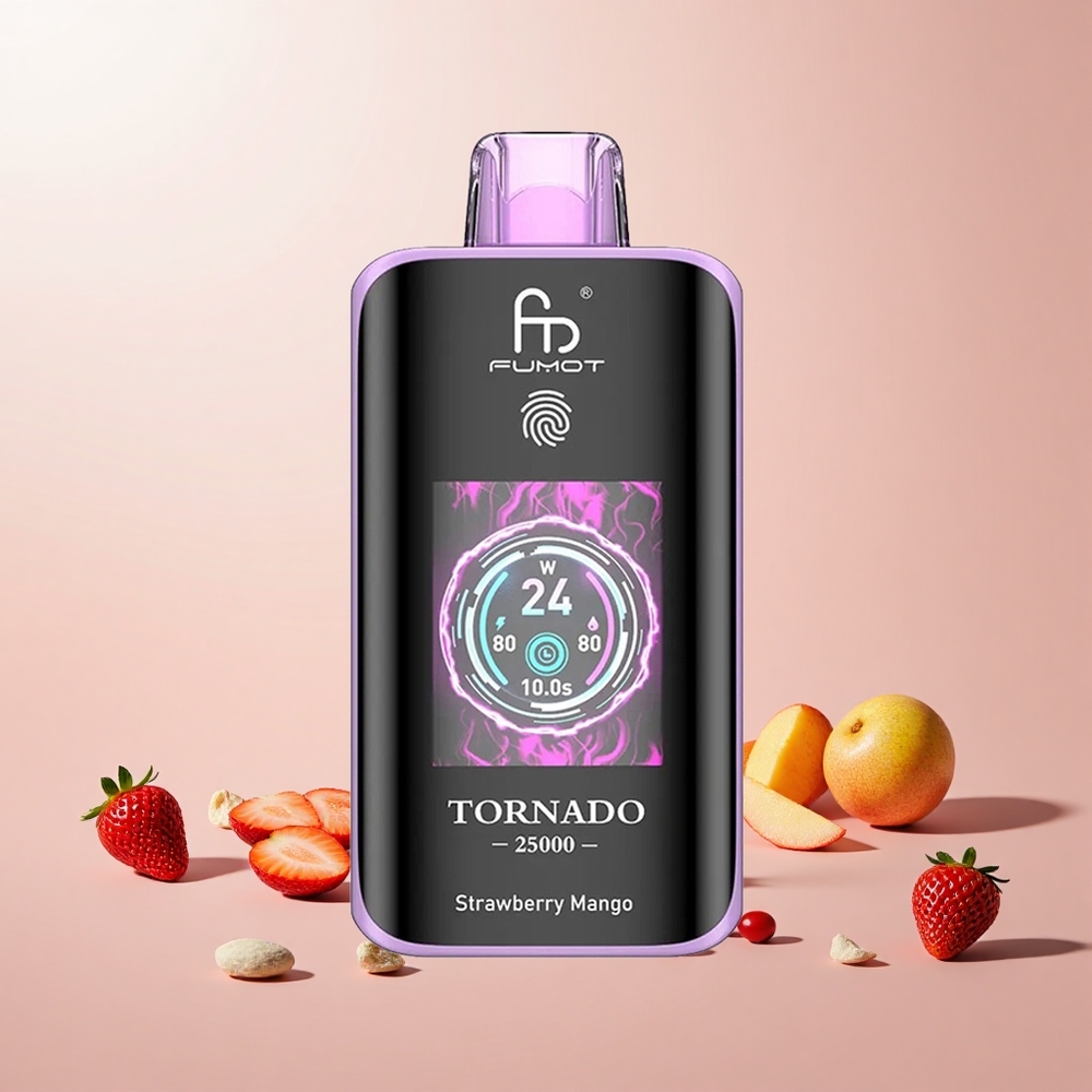 Fumot Tornado 25000 Puffs Engangs Vape Jordbær Mango med HD-skærm og 700mAh Genopladelig Batteri