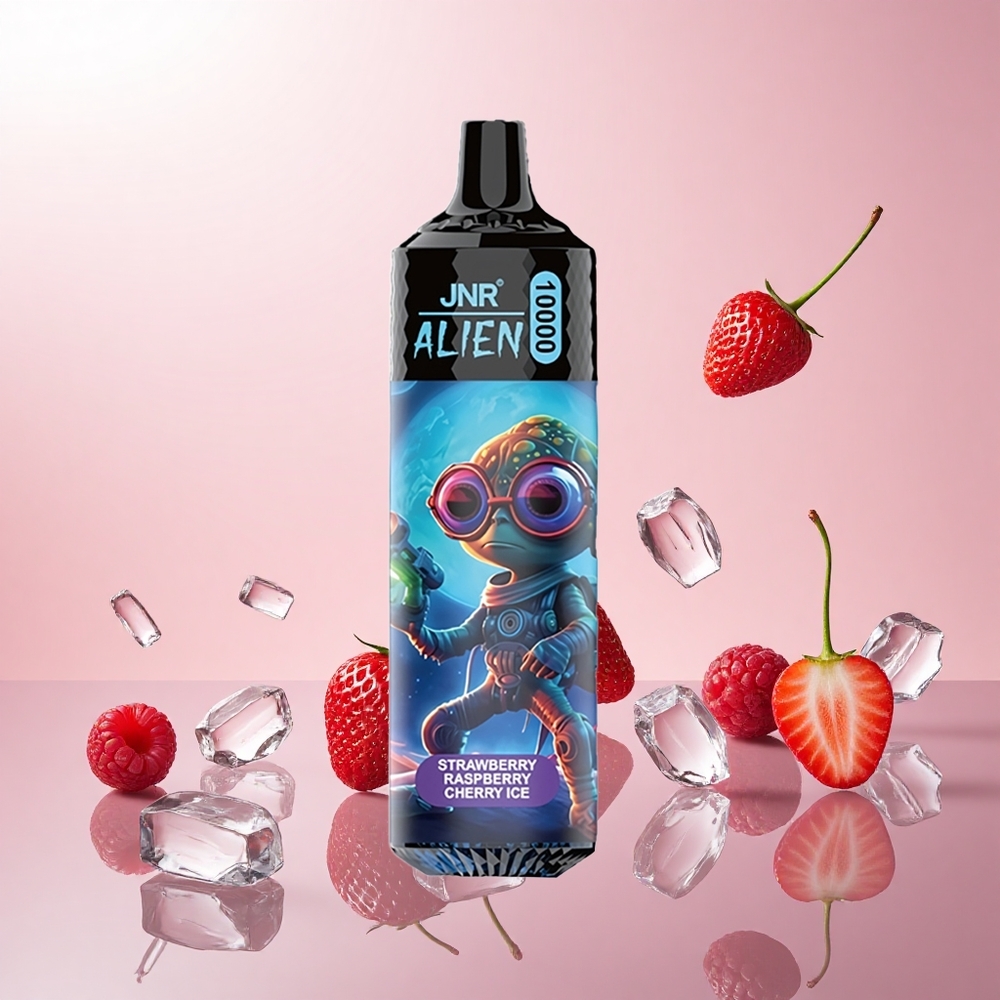 JNR Alien 10000 Puffs Engangs Vape Jordbær hindbær kirsebær is med 850mAh Batteri og Type-C Hurtigopladning