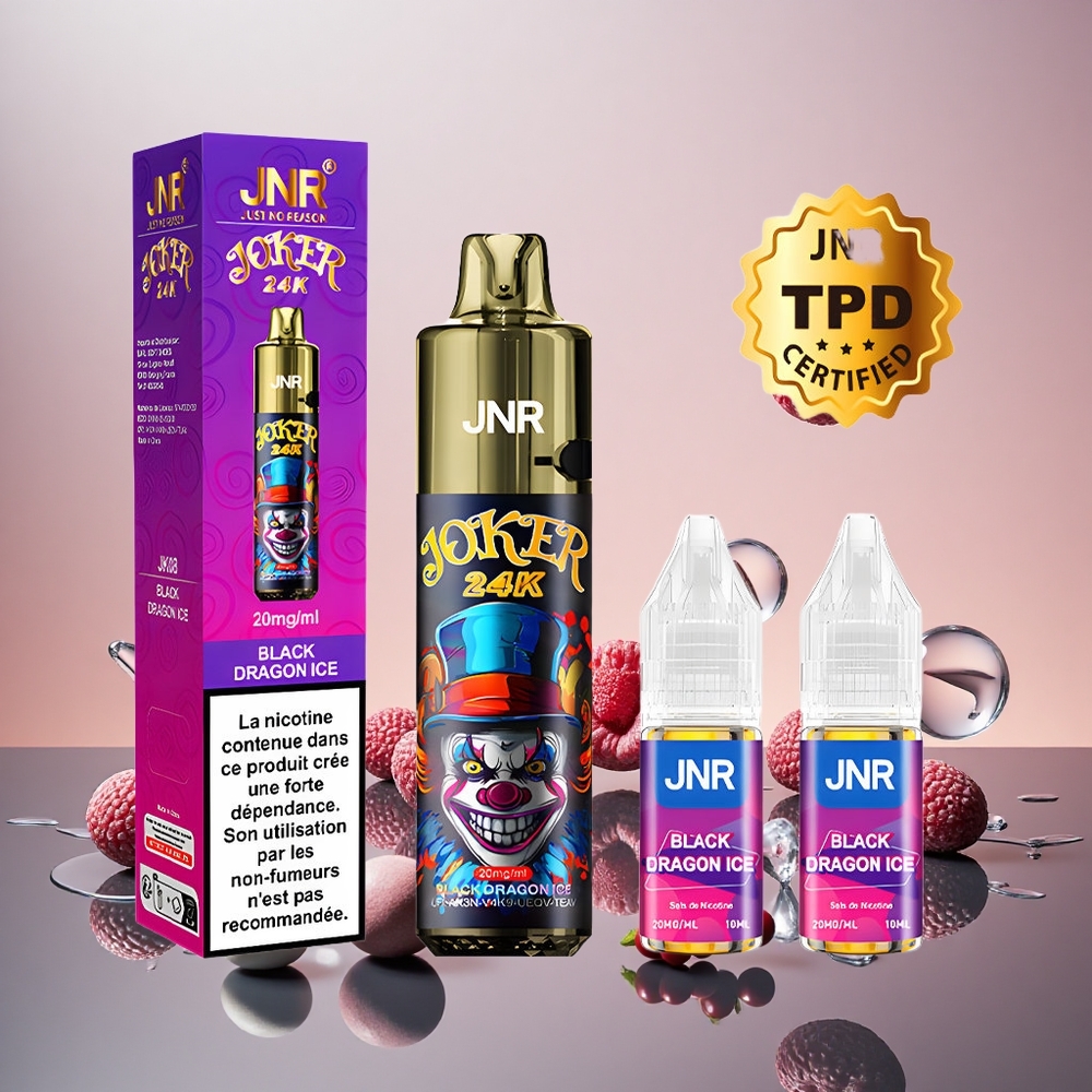 JNR Joker 24K Puffs Disposable Vape Sort Drage Is 2+10ml Genopfyldelig Pod Synlig E-væskeniveau 800mAh Batteri Type-C Opladning TPD Overensstemmelse 24000 Puffs 2% nikotinindhold