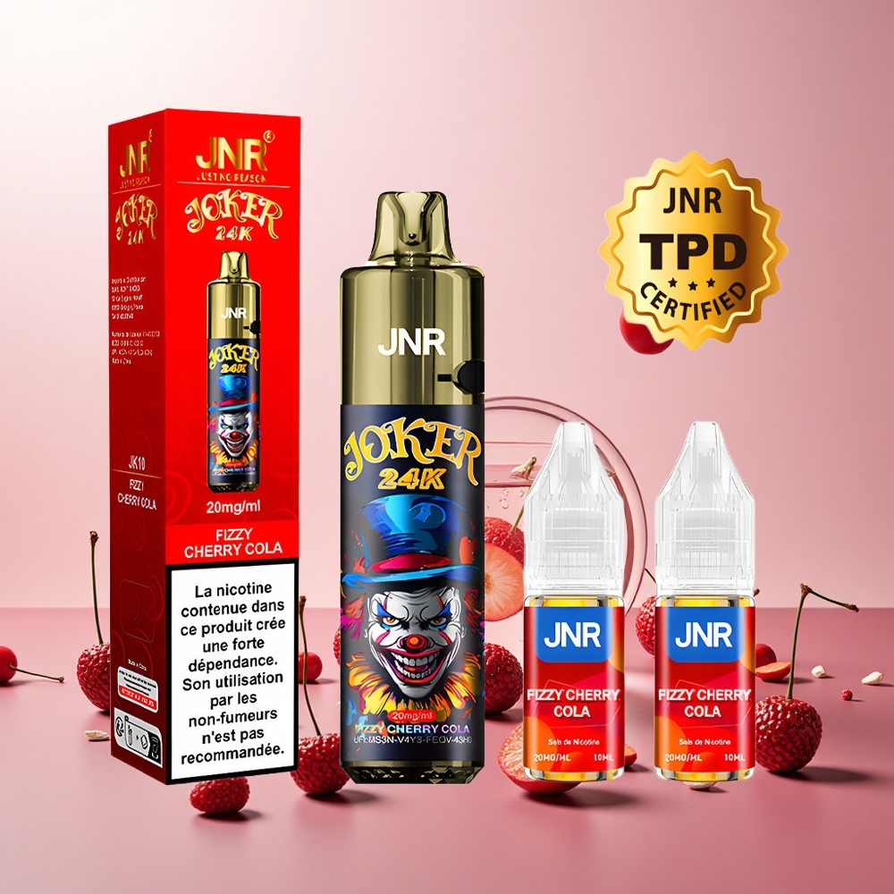 JNR Joker 24K Puffs Engangs Vape Sprudlende Kirsebær Cola med Synligt E-liquid Niveau og 800mAh Batteri