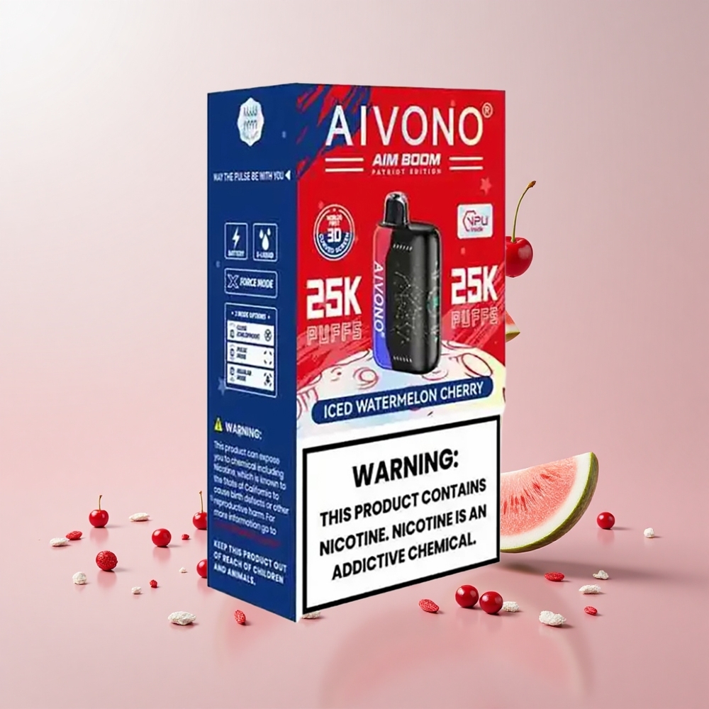 Aivono AIM BOOM 25000 Puffs Disposable Vape Is Vandmelon Kirsebær med 28ml E-Liquid og 650mAh Battery