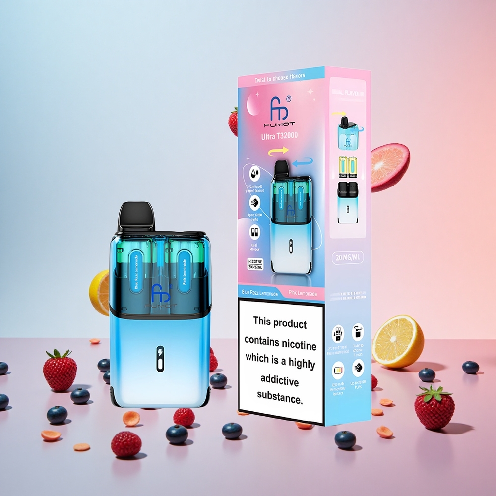 Fumot Ultra T32000 Disposable Vape Blå Hindbær Lemonade – Lyserød Lemonade (Op til 32000 puff, 800mAh batteri)