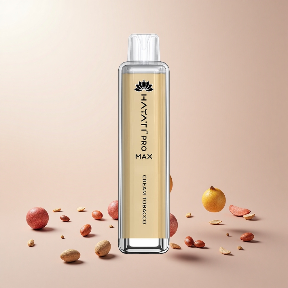 Hayati Pro Max 4000 Puffs Engangs Vape Fløde Tobak Features: 28x8x20mm 2%, 5% Nikotinstyrke Draw aktiveret Dual 1.1 Ohm Mesh Coil Op til 4000 puff Opladelig batteri