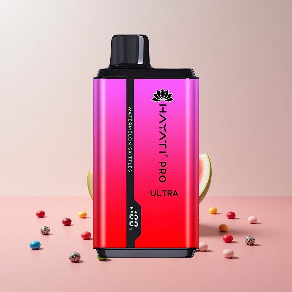 Hayati Pro Ultra 15000 Puffs Engangs Vandmelon Skittles Hayati Pro Ultra 15000 Puffs Funktioner: Pust: 15000+ Batteri: 850mAh E-væske Kapacitet: 2 12ml Nikotinstyrke: 2% Smagsvarianter: 49