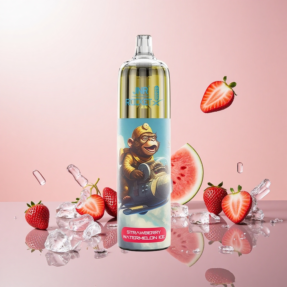 JNR Rocket-X 12400 Puffs Disposable Vape Jordbær Vandmelon Is med Justerbar Luftstrøm og RGB-belysning