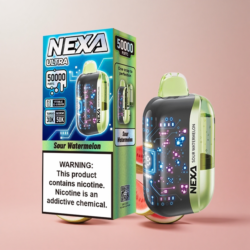 NEXA Ultra 50K Disposable Vape Sur Vandmelon 20ml Forfyldt Kapacitet 50000 Pust 5% Nikotinstyrke Type-c Opladning
