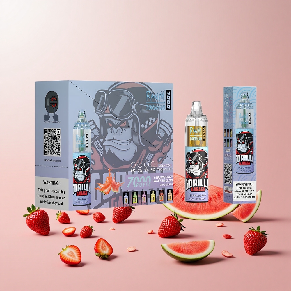 RandM Fumot Tornado 7000 Puffs Engangs Vape Jordbær Vandmelon 14 ML E-væske 850 MAH Batteri