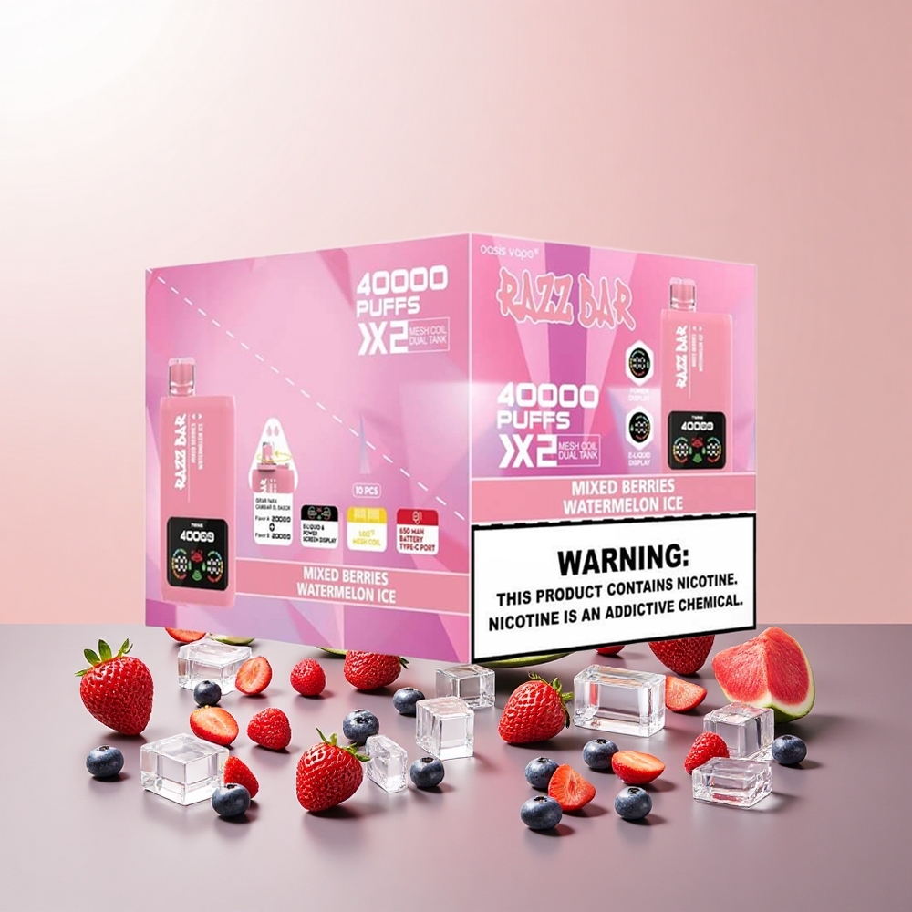 Razz Bar 40000 Puffs Engangs Vape Blandede bær/vandmelonis Type-C Port 2%,5% Nikotinindhold