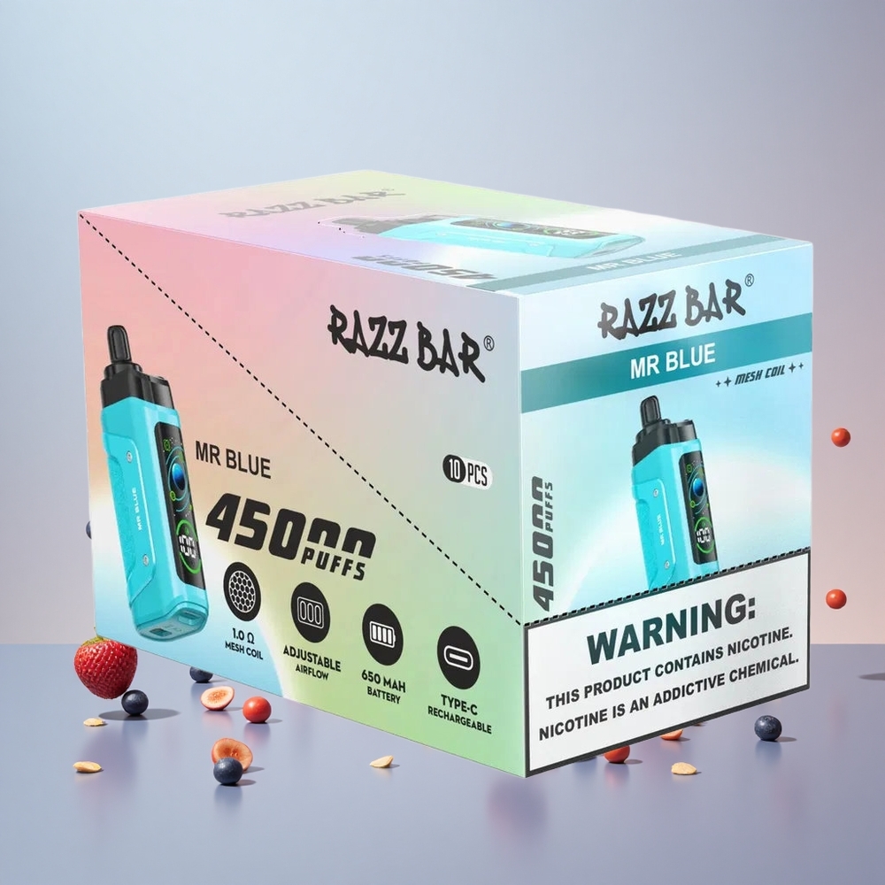Razz Bar 45000 Puffs Engangs Vape Mr Blå med Justerbar Luftstrøm og 20 mg/ml Nikotinstyrke