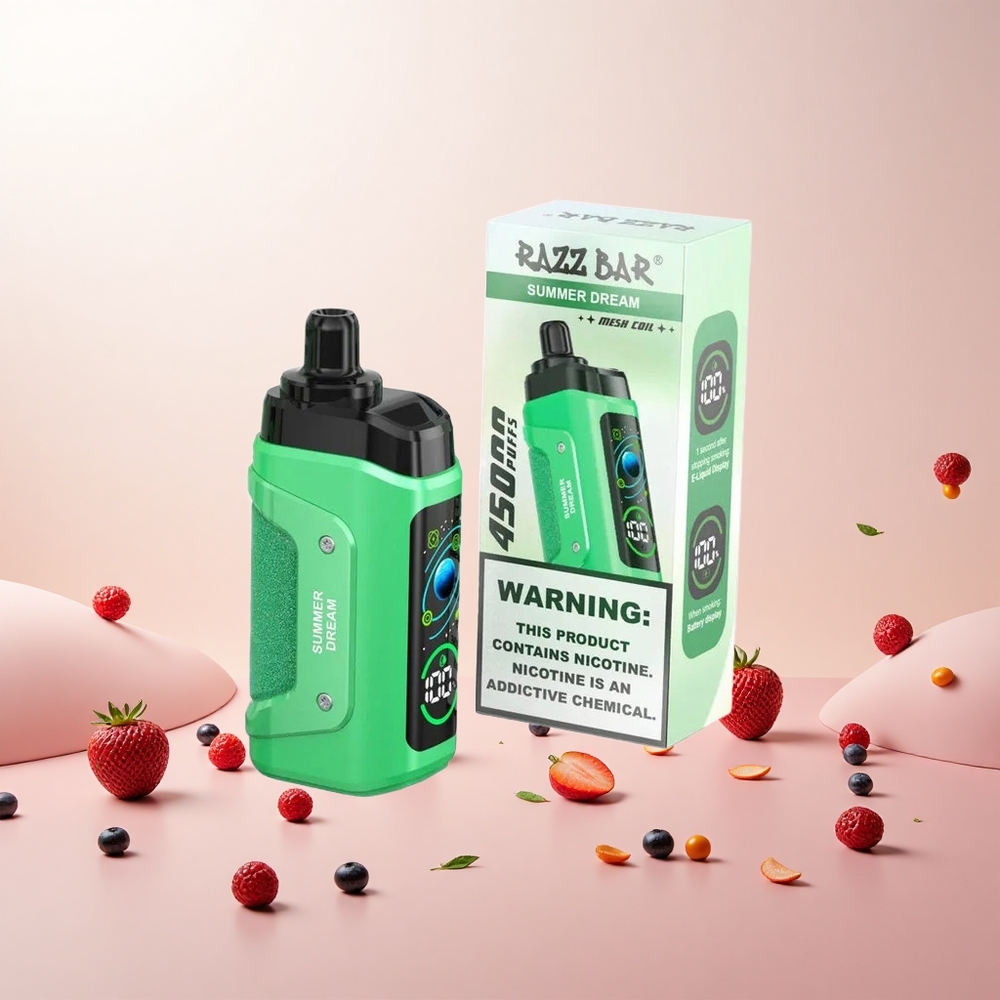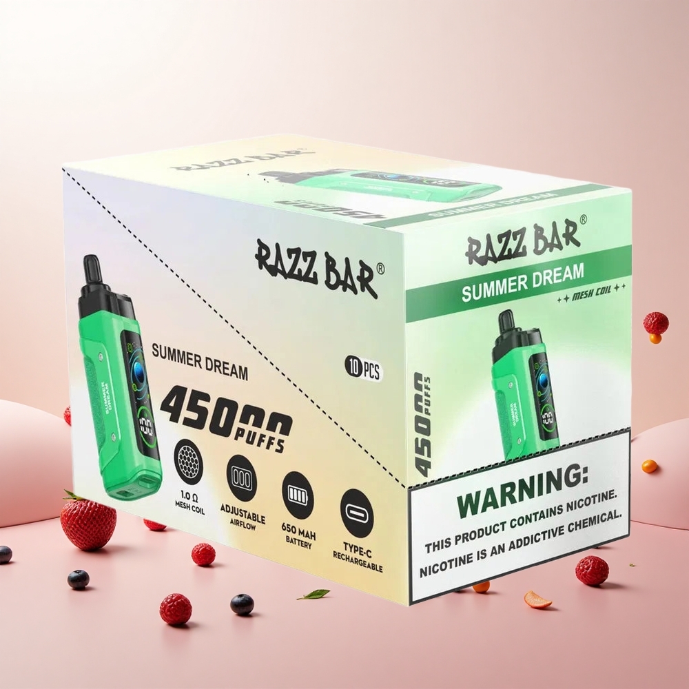 Razz Bar 45000 Puffs Engangs Vape Sommerdrøm Razz Bar 45000 Puffs Engangs Vape 650 Mah Batteri Type-C Genopladelig 20 mg/ml Nicotin Styrke