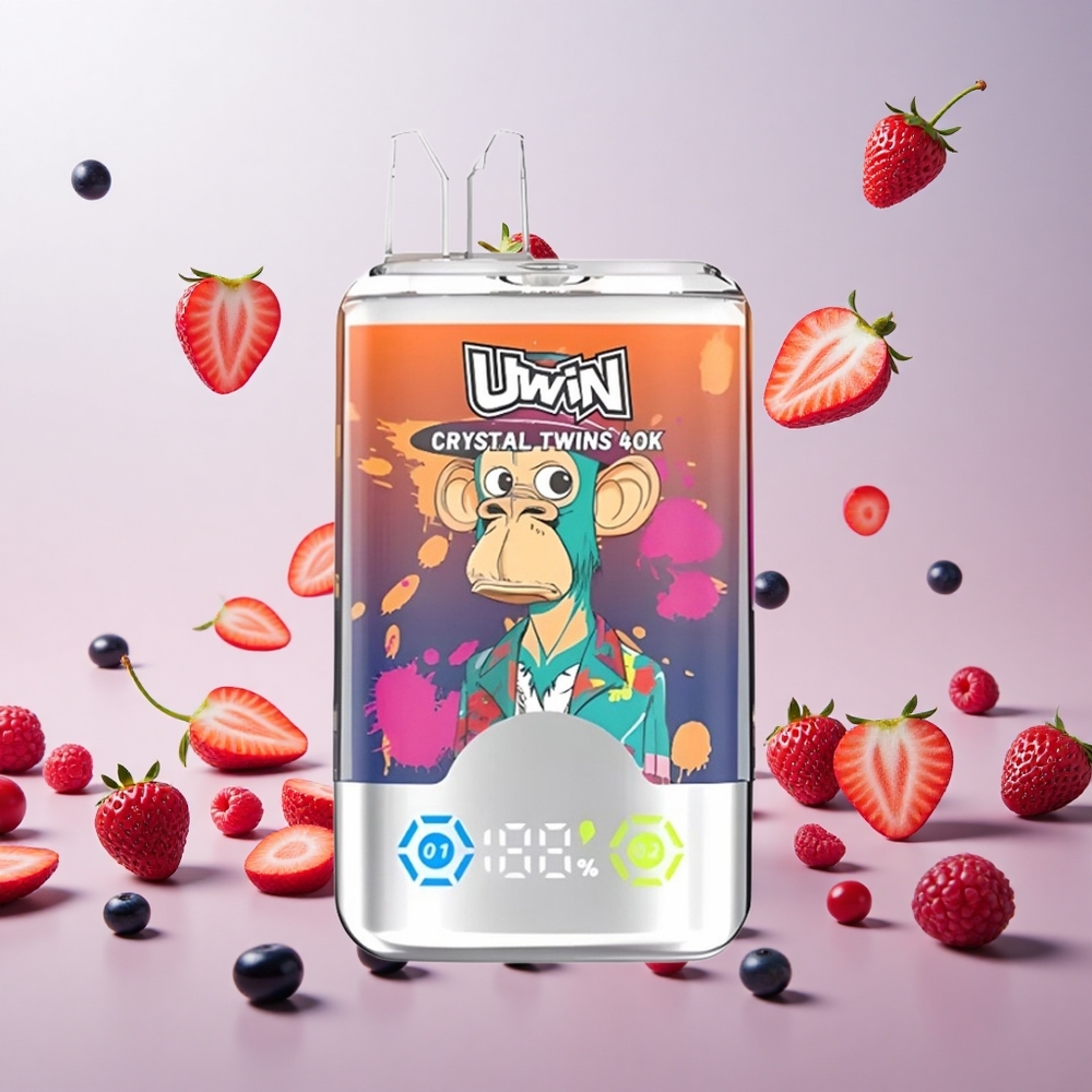 UWIN Crystal Twins 40000 Puffs Engangs Vape Jordbær Hindbær Kirsebær Mr Nicotinniveauer: 0%, 2%, 3%, 5%