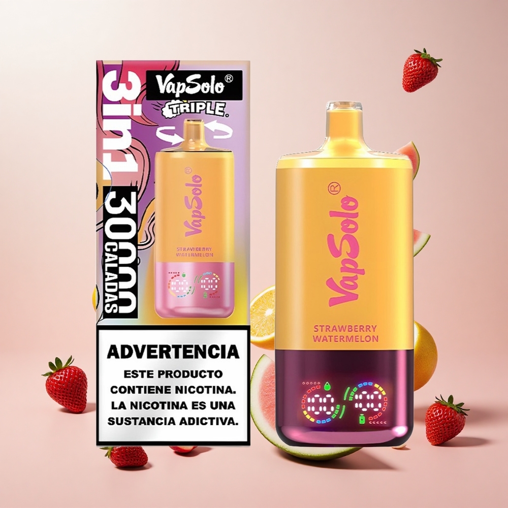 VapSolo Triple 30000 Puffs Engangs Vape Jordbær Vandmelon & Citron Fersken – 40ml, Type-C