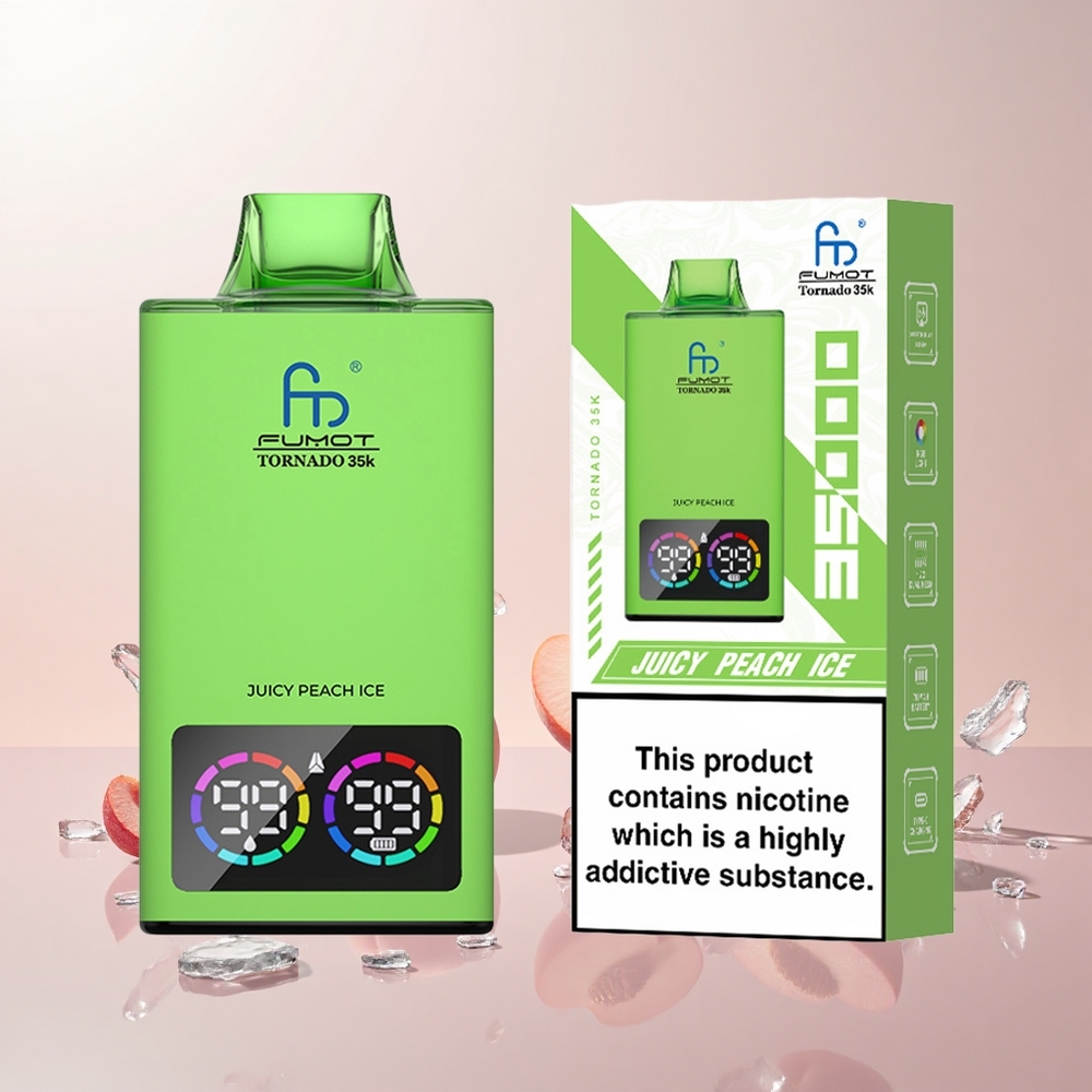 Fumot Tornado 35K Disposable Vape Juicy Peach Is Dual Mesh Spole Væskeindikator 15ml E-juice 700 MAH Batteri 35000 Puffs