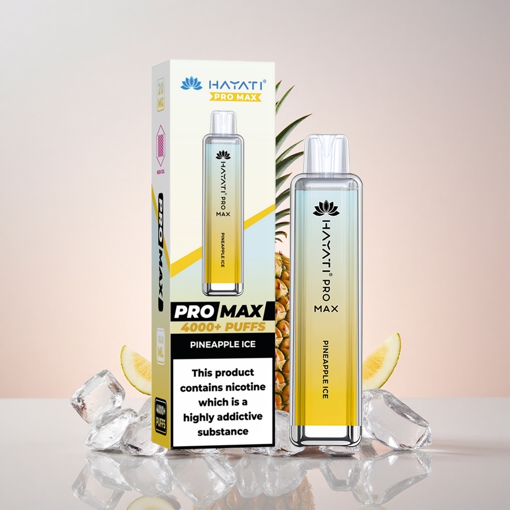 Hayati Pro Max 4000 Puffs Engangs Vape Ananas Is Hayati Pro Max 4000 Puffs Engangs Vape Funktioner: 28x8x20mm 2%, 5% Nikotinstyrke Sugaktiveret Dual 1.1 Ohm Mesh Coil Op til 4000 sug 1400mAh batteri LED-lys i bunden Krystalklart udseende Genopladeligt batteri 2ml tank med 10ml autofyld TPD-overensstemmelse