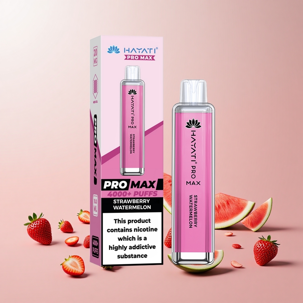 Hayati Pro Max 4000 Puffs Engangs Vape Jordbær Vandmelon 28x8x20mm, 2%, 5% Nikotinstyrke
