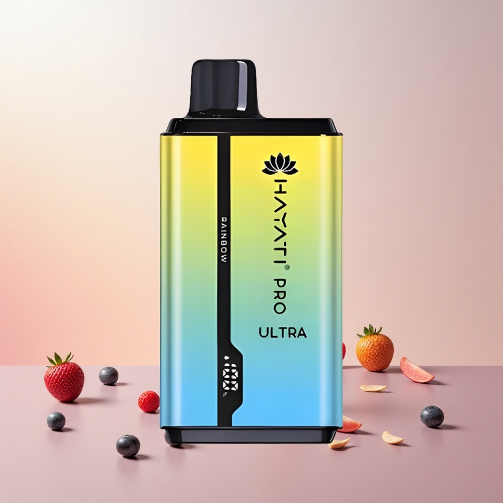 Hayati Pro Ultra 15000 Puffs Engangs Vape Regnbue Features: Pust: 15000+ Batteri: 850mAh E-Liquid Kapacitet: 2 12ml Nicotin Styrke: 2% Smagsvarianter: 49