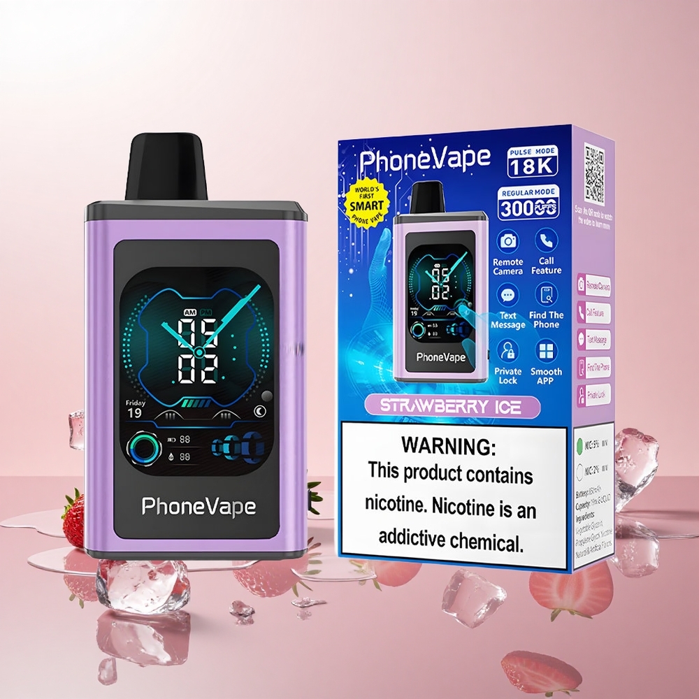JNR PhoneVape 30000 puffs Engangs Vape Jordbær Is med Turbo Tilstand og 850mAh Type-C Genopladelig Batteri
