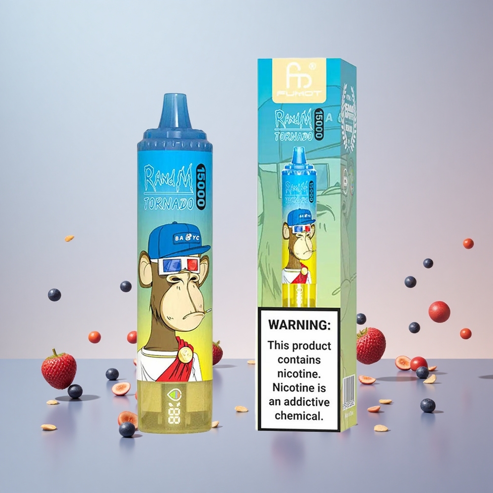 RandM Fumot Tornado 15000 Puffs Engangs Vape Hr Blå med 25ml og 850mAh Fumot RandM Tornado 15000 Puffs med 25ml og LCD-skærm
