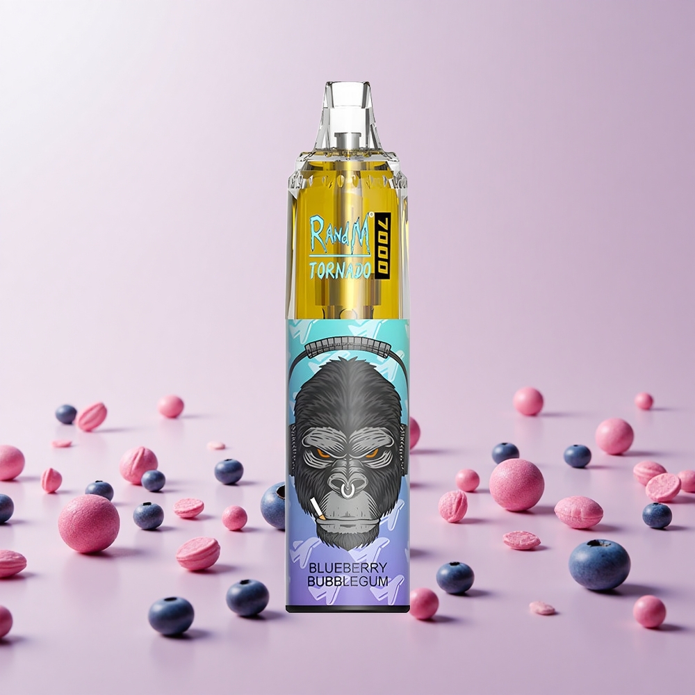 RandM Fumot Tornado 7000 Puffs Engangs Vape Blåbær Tyggegummi med 14 ML E-væske og 850 MAH Batteri
