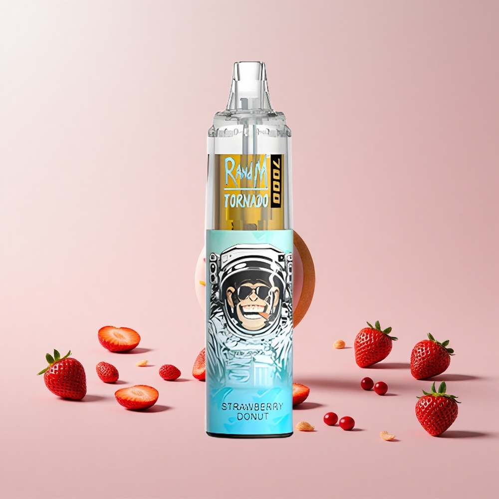 RandM Fumot Tornado 7000 Puffs Engangs Vape Jordbær Donut 14 ML & 850 MAH