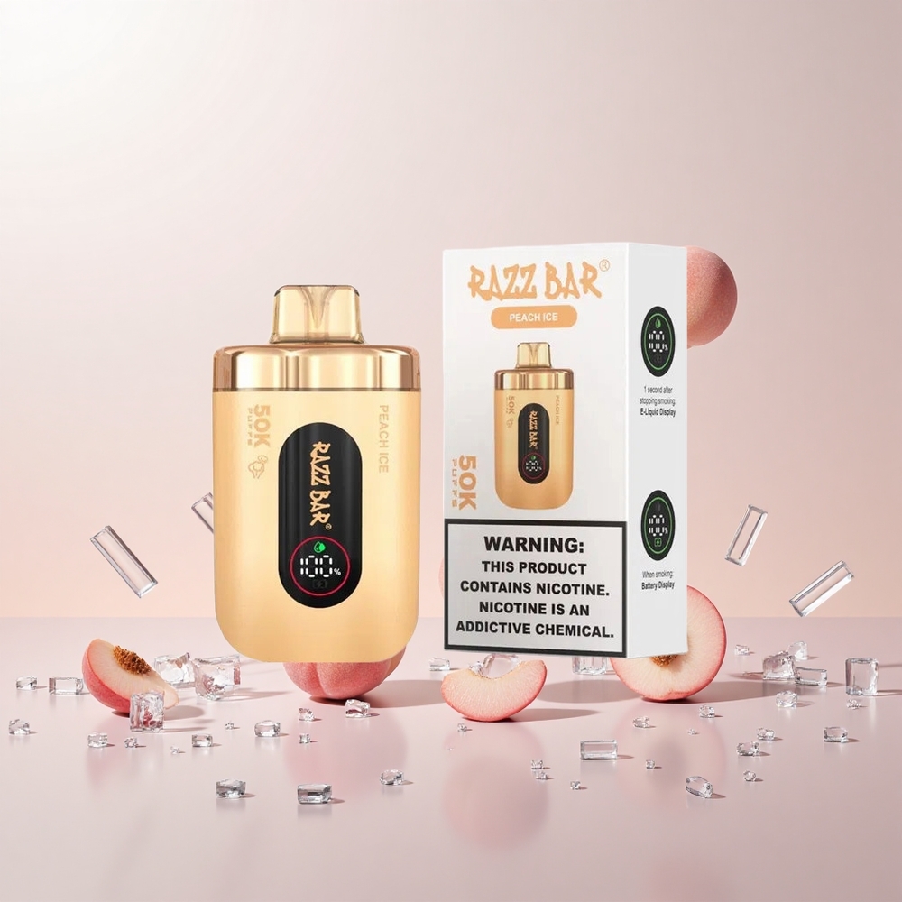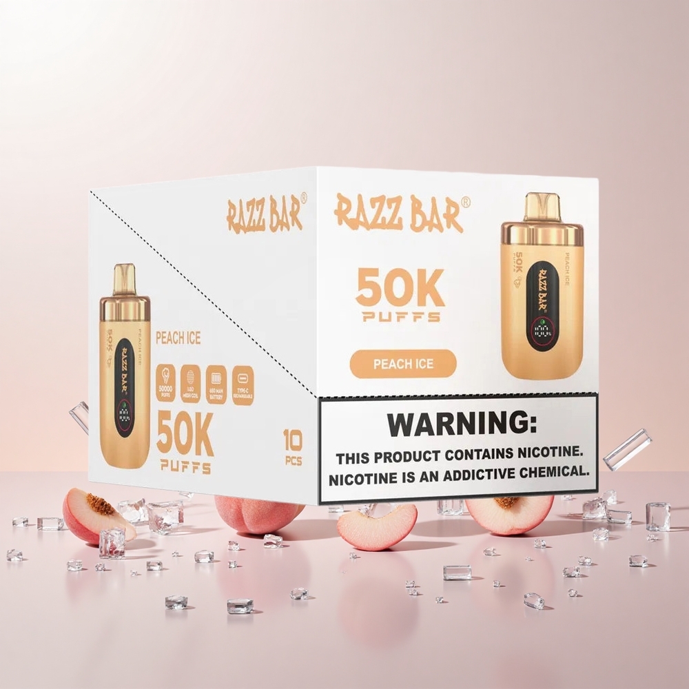 Razz Bar 50K Puffs Engangs Vape Fersken Is med 50.000 Puff og Type-C Opladning