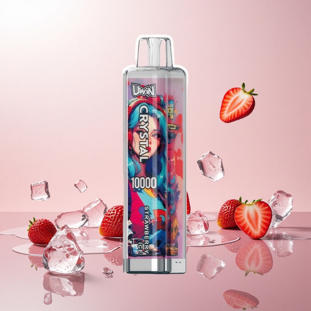 UWIN Crystal 10000 Puffs Engangs Vape Jordbær Is Nicotinstyrke: 0%, 2%, 3%, 5% 18ml E-væske kapacitet